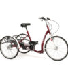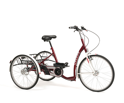 Rower trójkołowy dla dorosłych dostępny w klasycznym bordowym kolorze lub w bardziej naturalnej szarej tonacji. Doskonały rower na dłuższe wycieczki, stabilny i komfortowy.